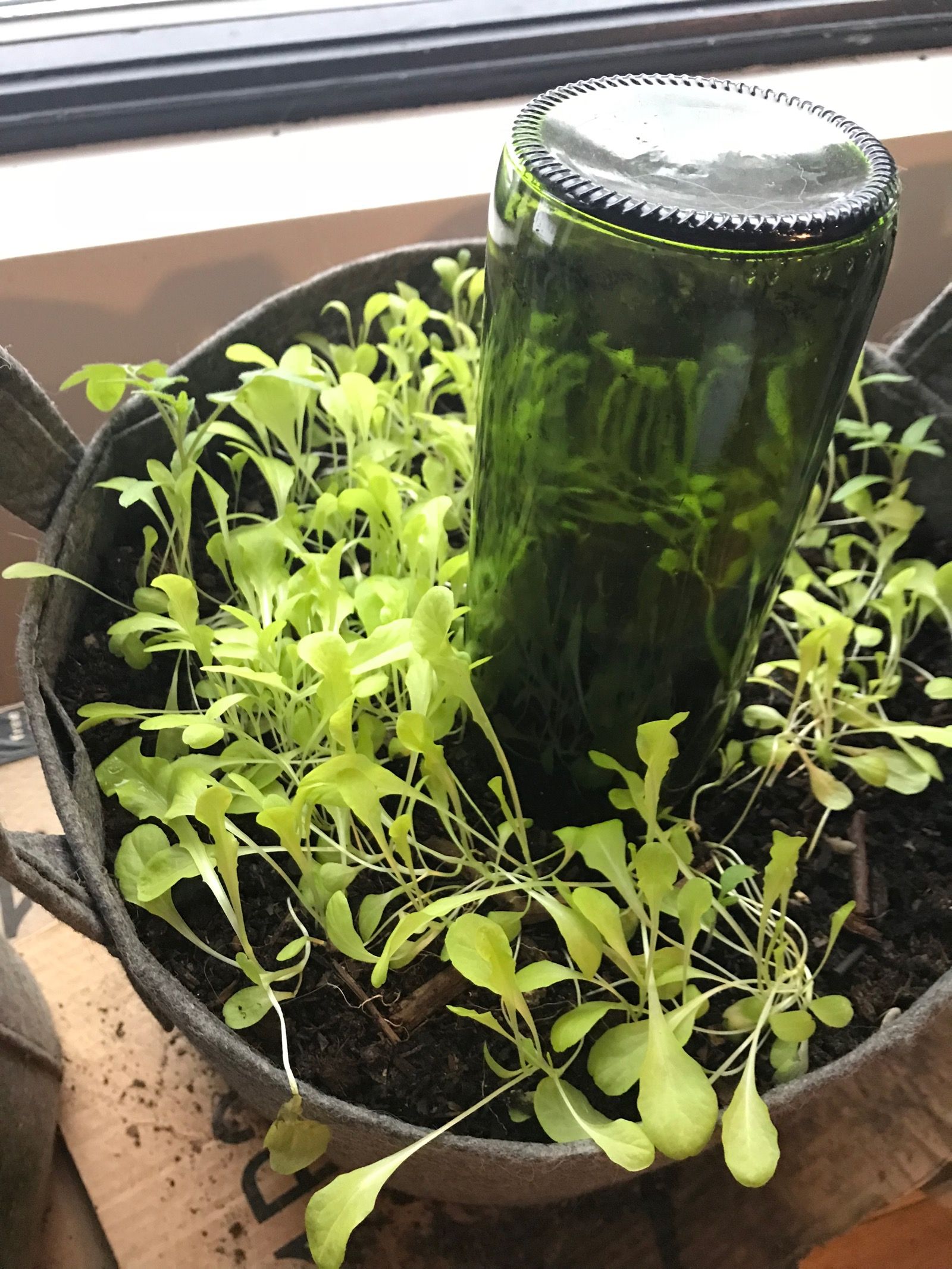 It's been 31 days since I started my first seeds in the grow bags. Not the results I had hoped for. There just wasn't enough daylight hours to support decent growth, and the lettuce and spinach became really leggy and grew slowly. I'm hoping they kick it up a notch now that the sun is staying around much longer. But if not, I'll harvest the micro greens and replant.