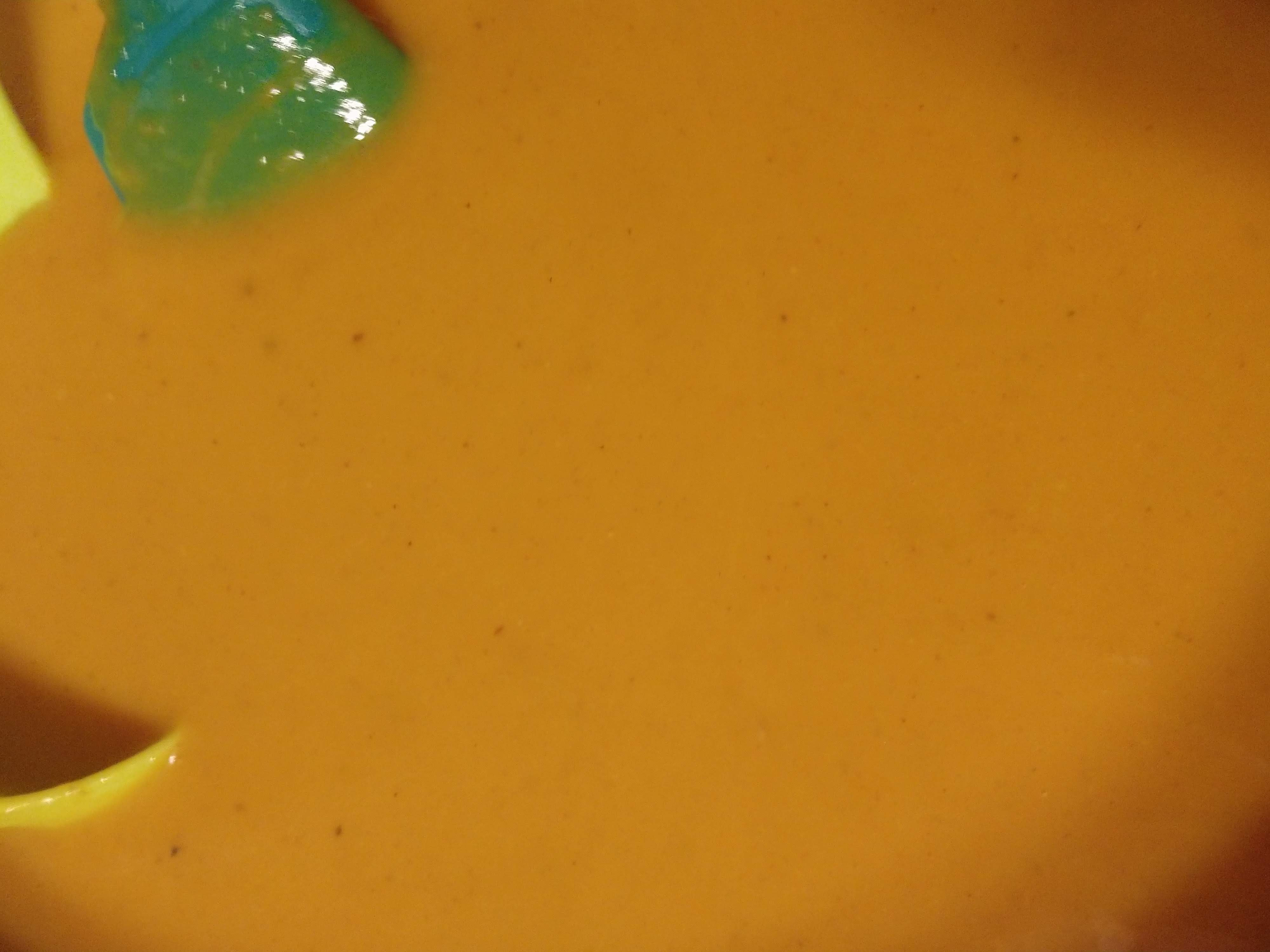 Add onion, persimmon and inside of squash and blend. You will have to add your broth as you go. It can be vegetable or meat broth, store bought or homemade. I used the organic chicken broth from Kroger. Blend until smooth.