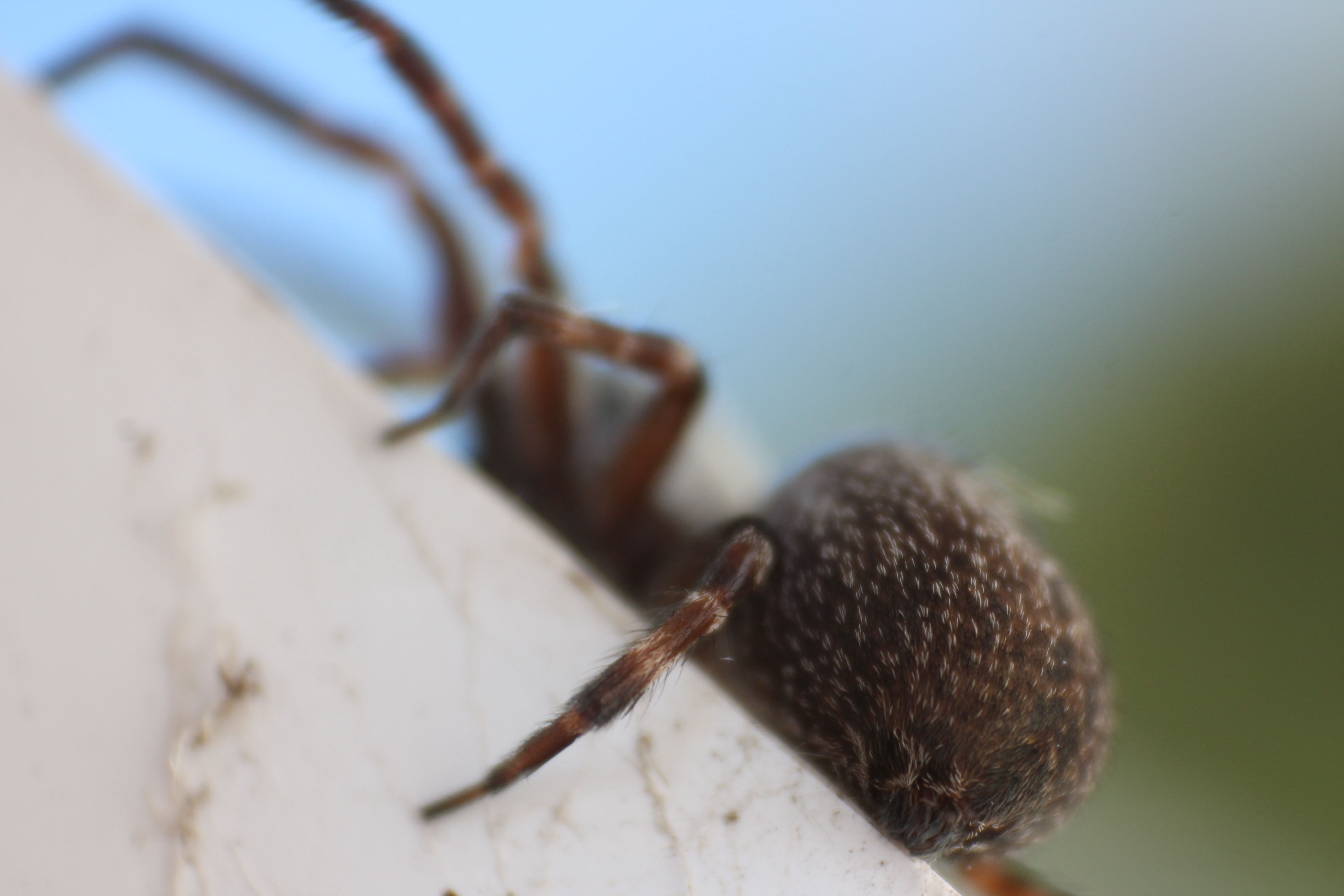 When moving our greenhouse Capt'n found a rather sizable Grey House Spider (Badumna longinqua). She didn't seem to like losing her home and didn't want to stick around for a photo of her best side.