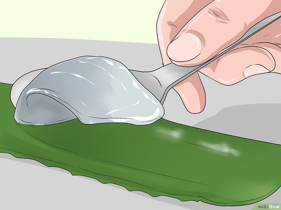 To take aloe vera gel, slice the center of aloe leaves straight down.