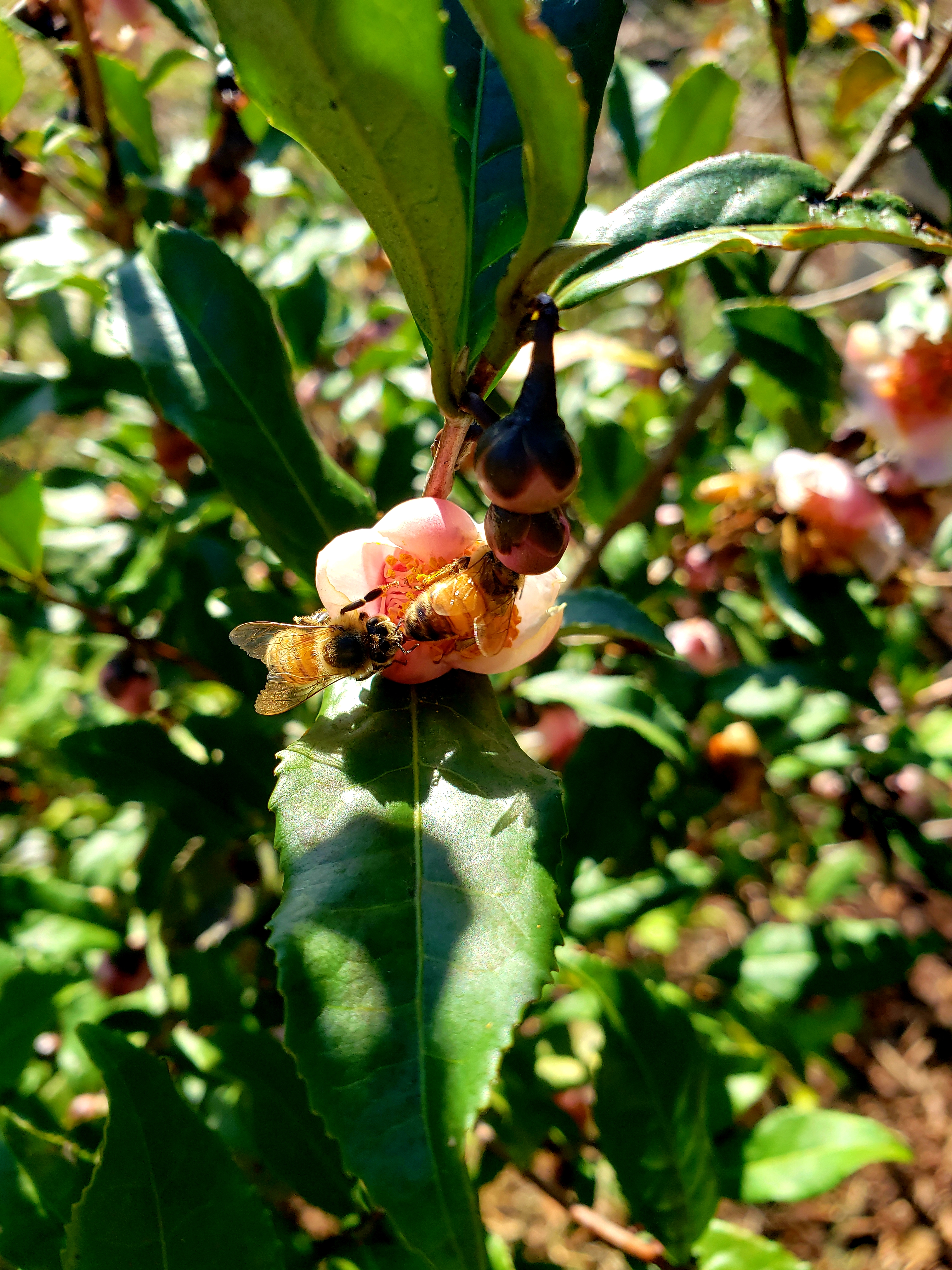 Now, if you know me you know I LOVE tea and I love honeybees and if you know honeybees you know they LOVE this species of camellia.