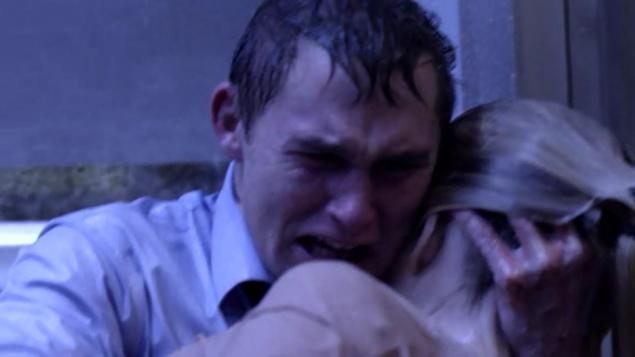 So now we've got this new dead janitor guy in the booth. There's supposed to be this big "HOLY SHIT" moment when we see it wasn't the killer; but it's way too obvious beforehand. Fed up, Corey makes a run for it at some point and is taken out by a trip line; one that seemed to have appeared in the small time frame since the security guard without any evidence of the killer putting it up. As Corey is laying on the ground, the killer stabs him and leaves him, convinced he is dead. But as dead as he should be, he's not! And as the killer is fucking around out back, Emily and David run and drag him inside. They could have used the TIME MANAGEMENT SKILLS SO MUCH BETTER.