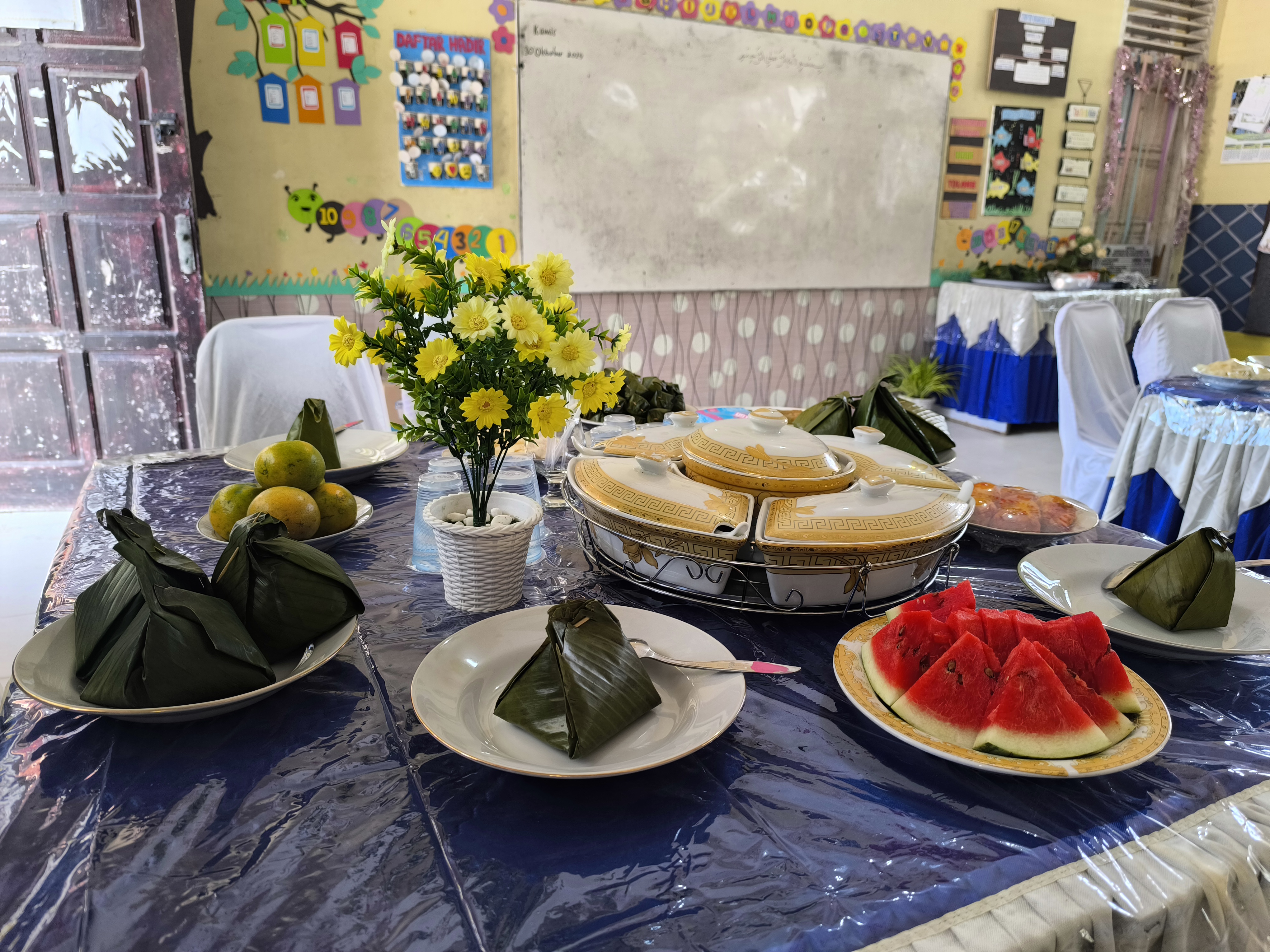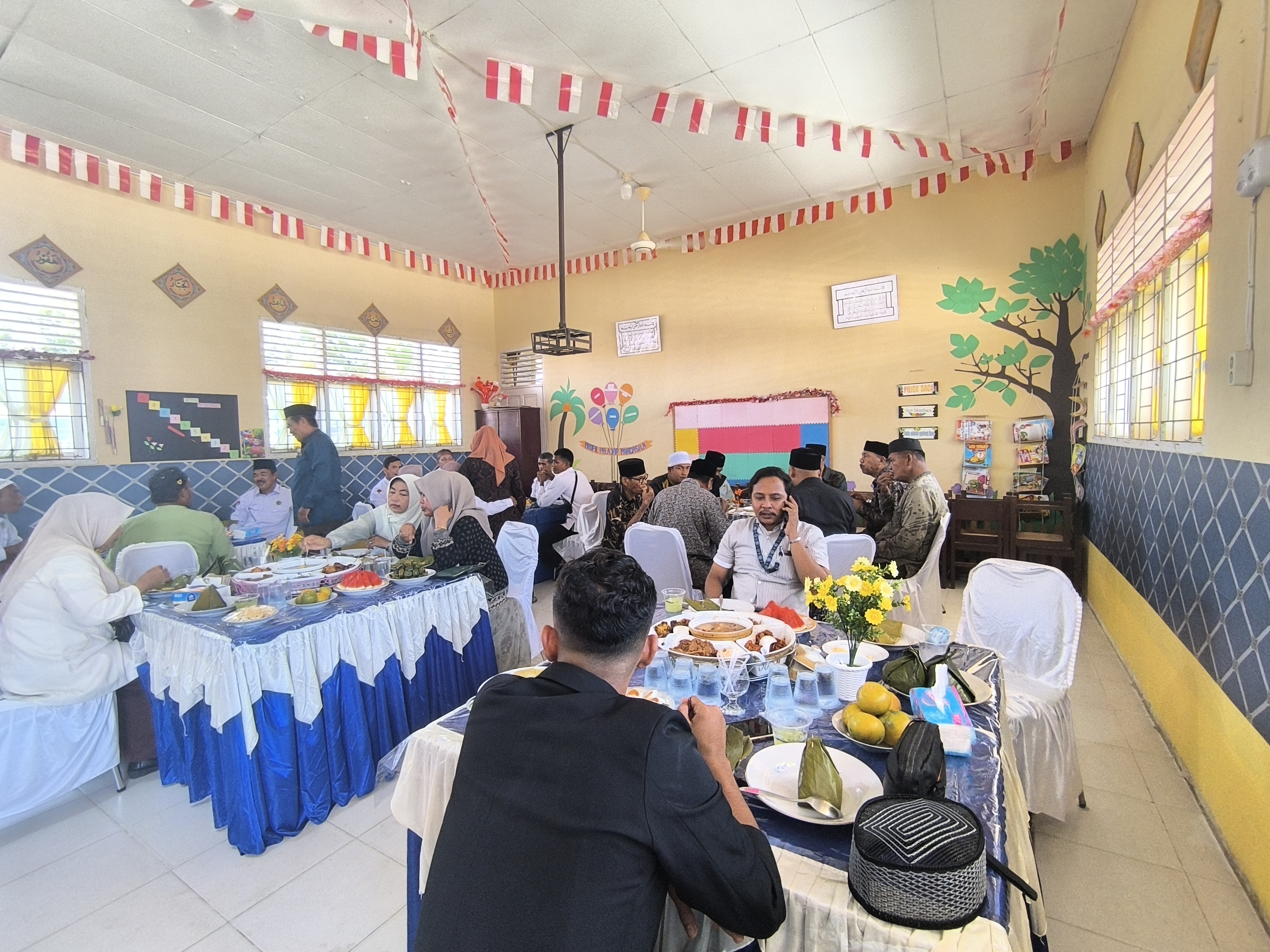 Saat aku tiba di MIN 2, ternyata aku diarahkan ke ruang VIP. Di sana masih sepi, akupun mencoba menghubungi beberapa kawan untuk menemani. Setelah selesai makan, aku segera pamitan. Aku pulang ke sekolah dengan menebeng motor Andi sales PT Erlangga.