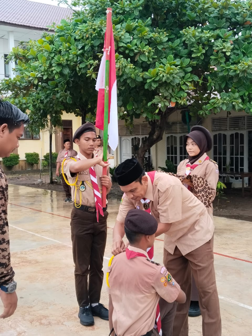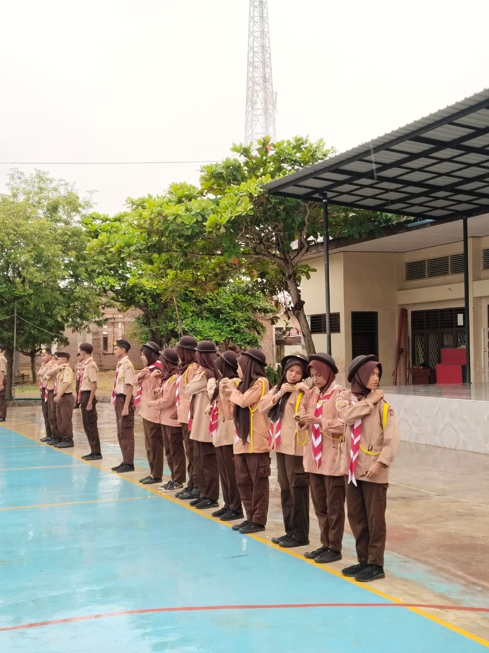 Kita kembali lagi ke topik, dalam penyematan tanda Penegak Bantara, seluruh anggota pramuka sangat antusias. Hujan bukanlah penghalang bagi semangat mereka yang bergelora.