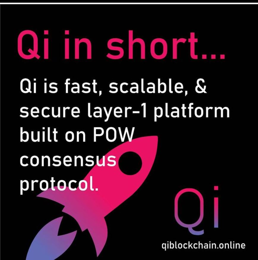 Qi is a decentralized POW (Proof of Work) blockchain with an application native currency that uses RPC mechanisms to enable the creation of fungible and non-fungible assets. Qi's primary focus is to provide a foundation for developers to create their own dapps and smart contracts. Qi is blockchain agnostic and can be used with any blockchain that supports ERC20 tokens. Qi has a built in proof of work mechanism which enables developers to earn Qi by contributing their computing power to the network.