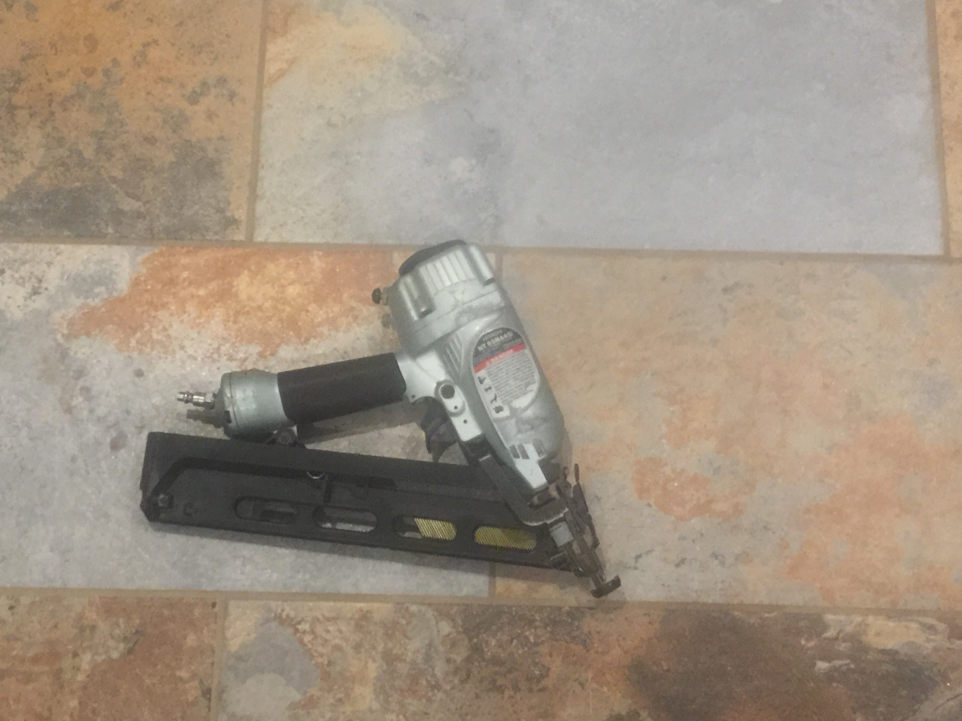 Hitachi 15 gauge nailer was used to nail right below the tongue on each pre made tongue and grove board.