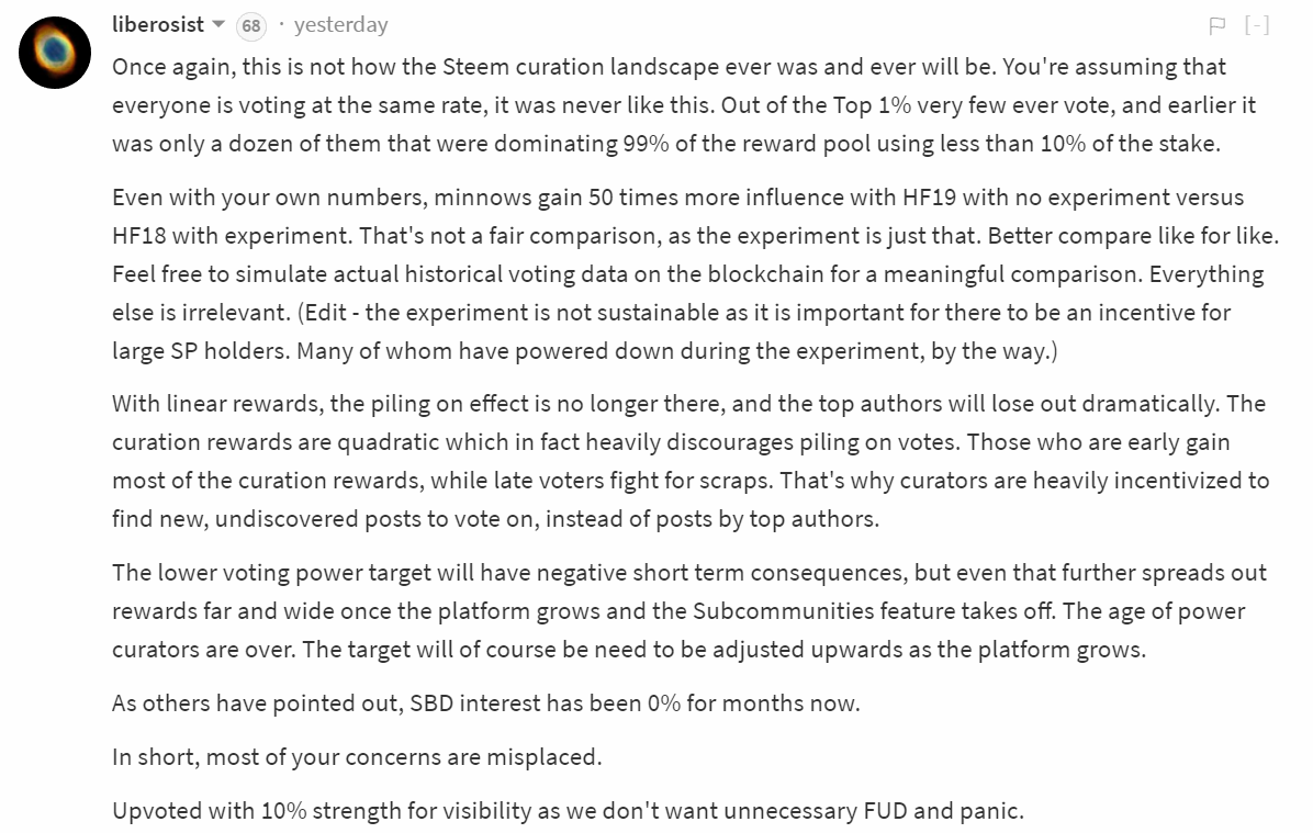 Now take HF 19. We're arguing about that. He's coming from a curation is incredibly important standpoint and is trying to do everything in his power to improve that. I'm coming from a minnow perspective and trying to improve that. We're both fighting for what we think is best on the platform and we both have different opinions on what should be done to make it better. We both have strong opinions so we've had a few arguments on my wall. This is less about right and wrong and more about equilibrium and balanced needs along with different perceptions and perspectives.