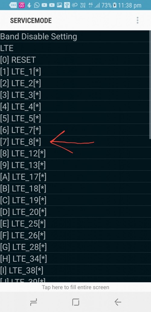 2. Your current network configuration will be shown, as you can see, I am now connected on the slow Band 8 spectrum