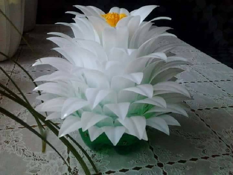 There is a beautiful and creative craft idea how to make show piece flower with plastic bottle craft idea..