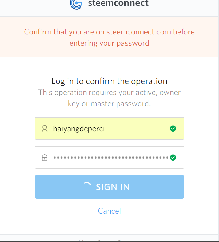After reaching the website, make sure it is SteemConnect and proceed by clicking CONTINUE: