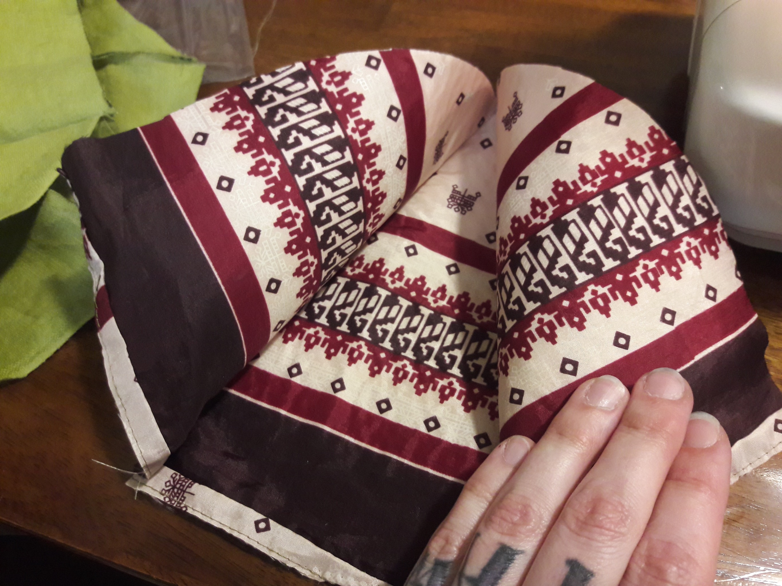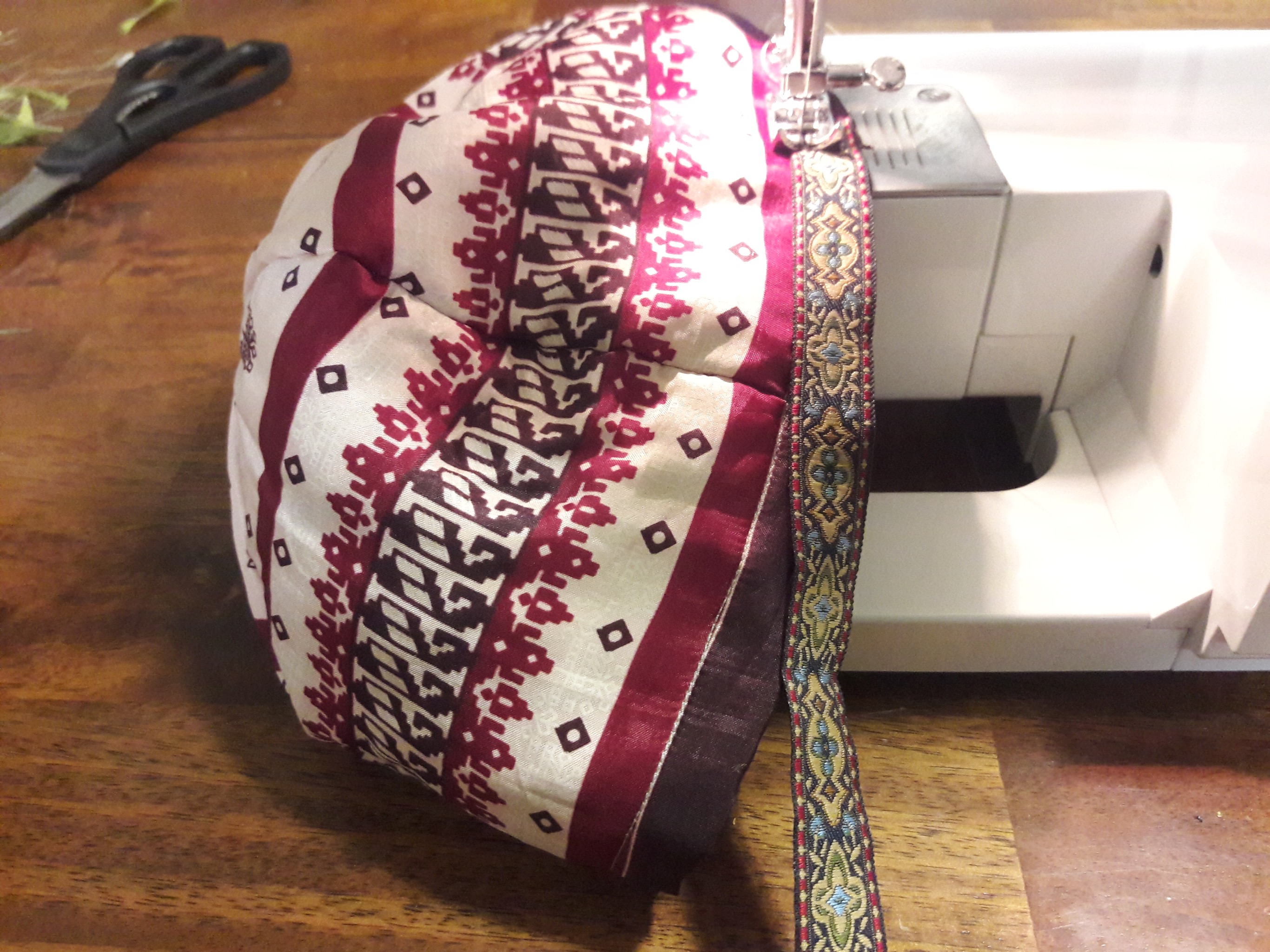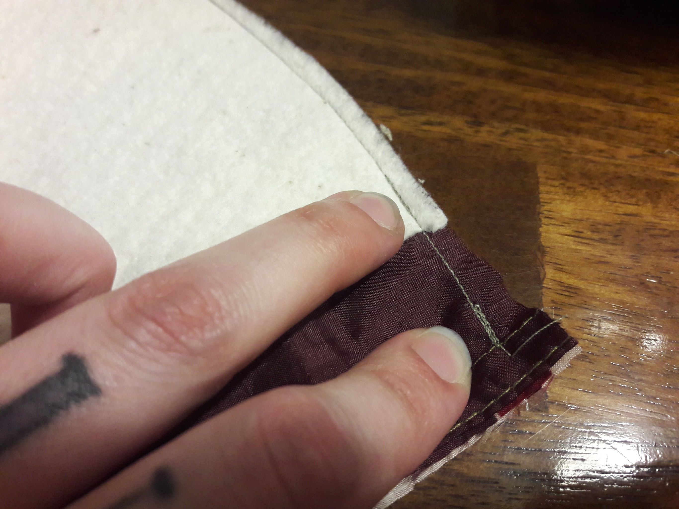 I worked the inside and the outside pieces together until they were seated the way I wanted them. Then it was a simple matter of folding the edge over and finishing it.