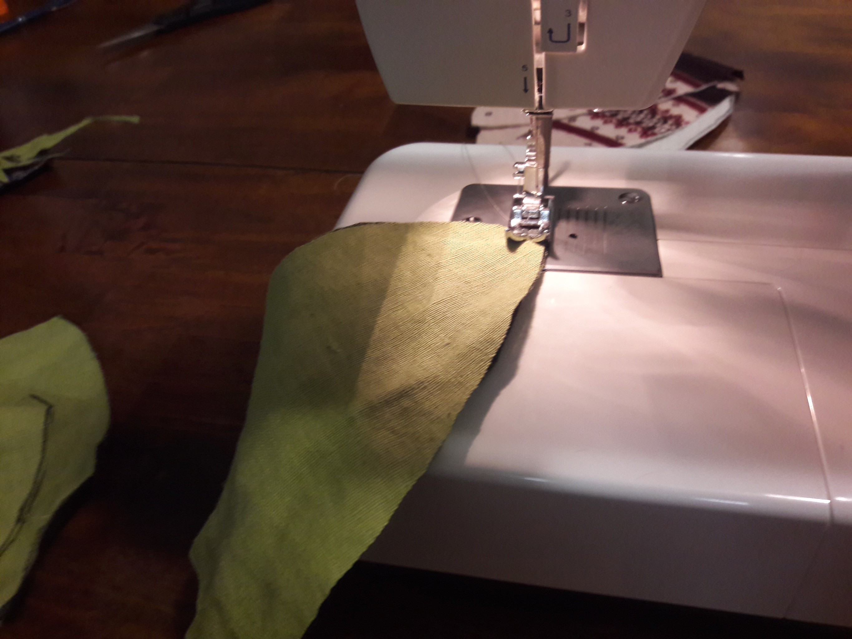 After all the pieces are cut out I sewed each side together, same method as the other hat.
