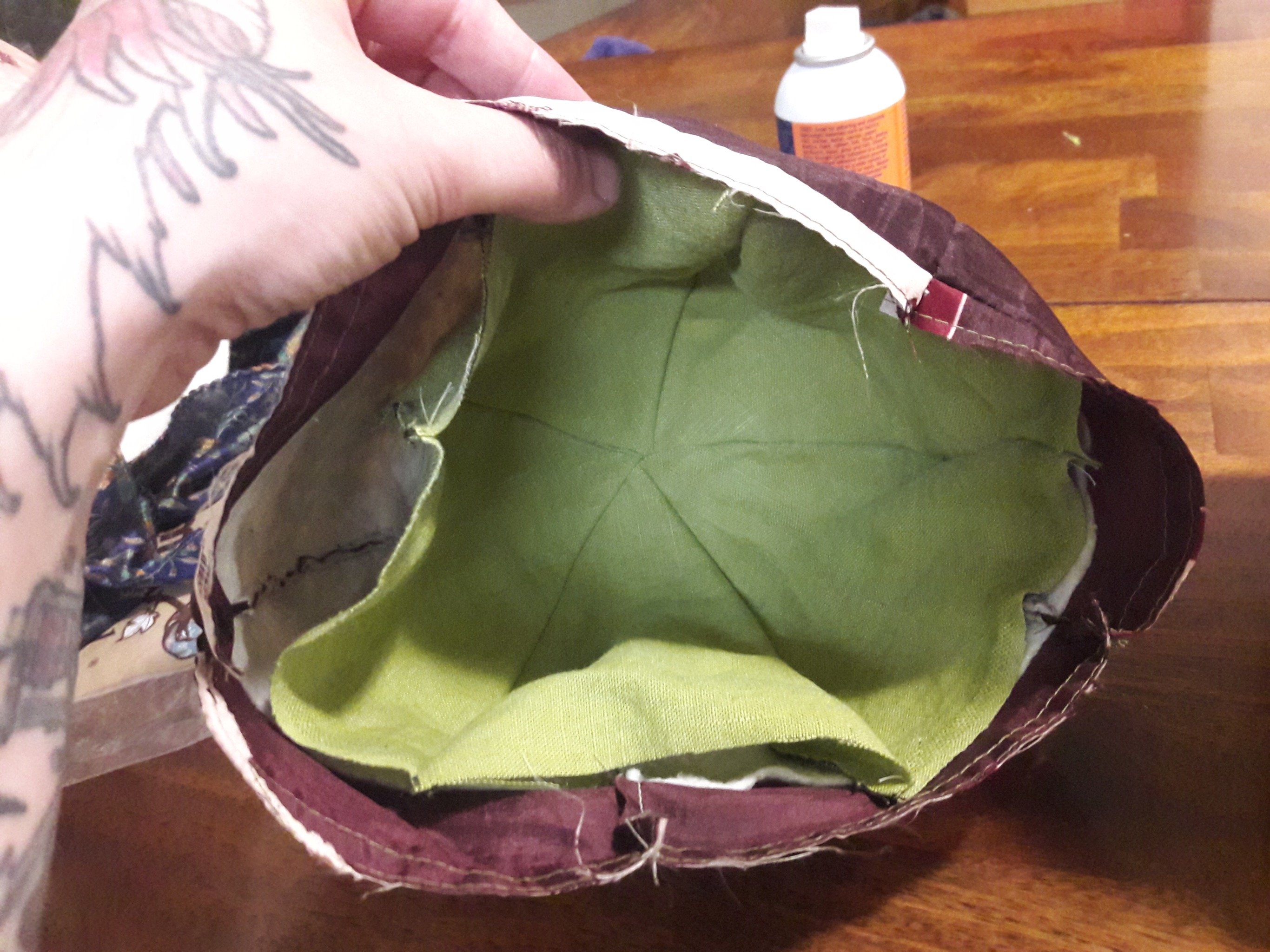 I used the same cotton batting and I left a little bit of the over hang so I could fold it in on the brim and give the hat a more finished look.
