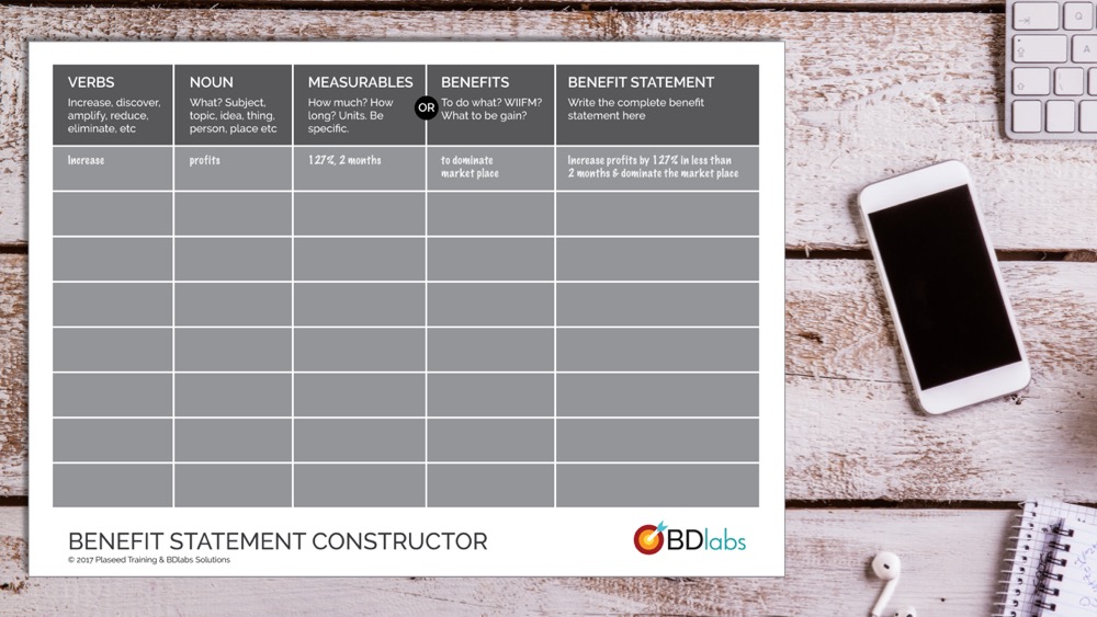 Yes, benefit statements are simply simple phrases that are supposed to highlight the benefit of using your products or services. It's recommended that you use verbs in front to make it easy, and if you can add something measurable, like "by 203%" or "in just a week", it will be even better. Of course, not all benefits can be measured in units, which is fine.