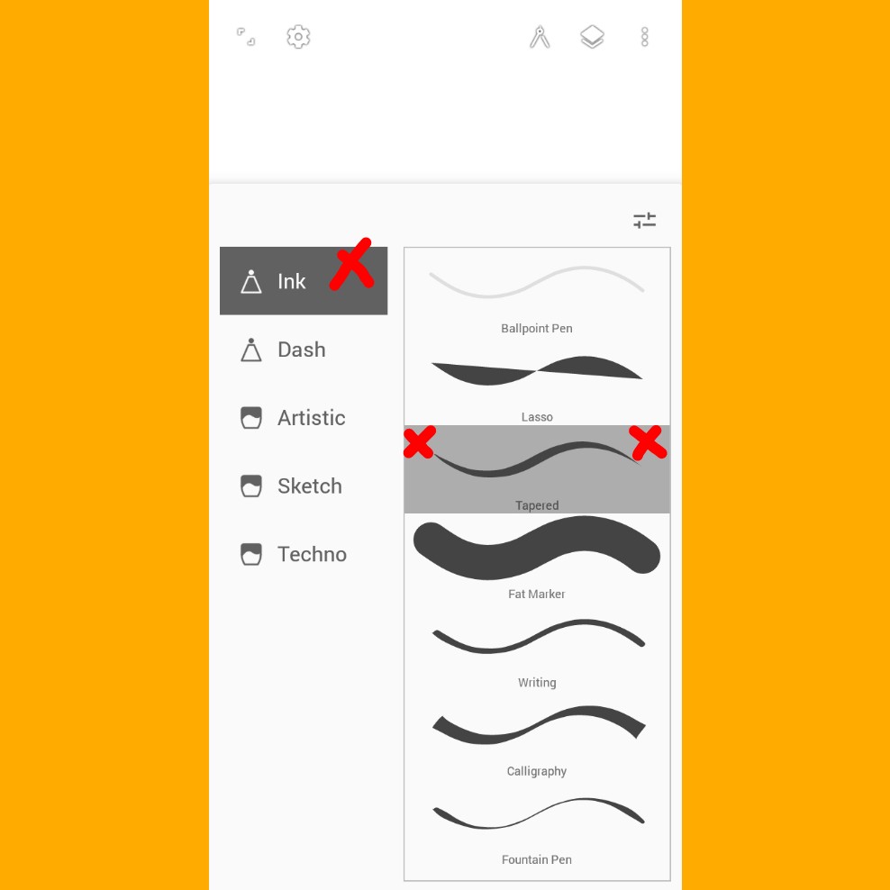 I prefer using the ink brush and in the ink option select tapered. Use to draw your outline carefully.