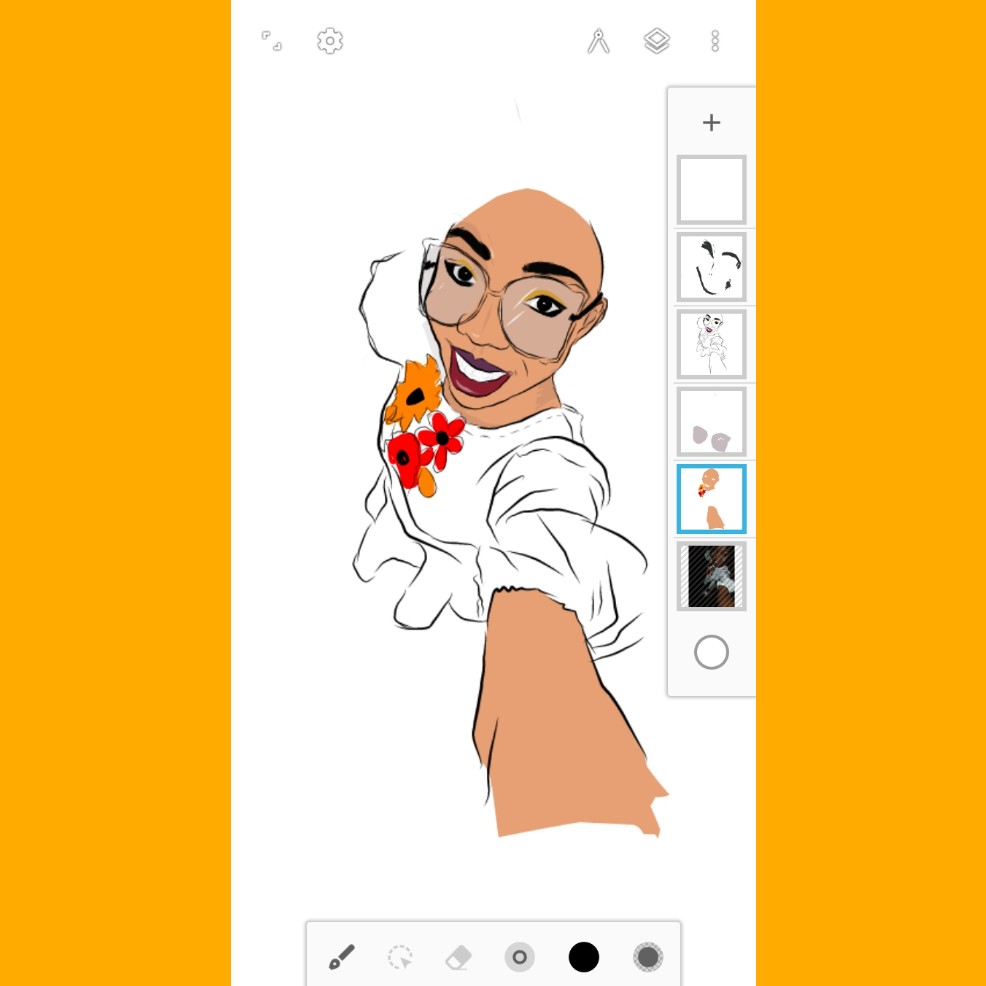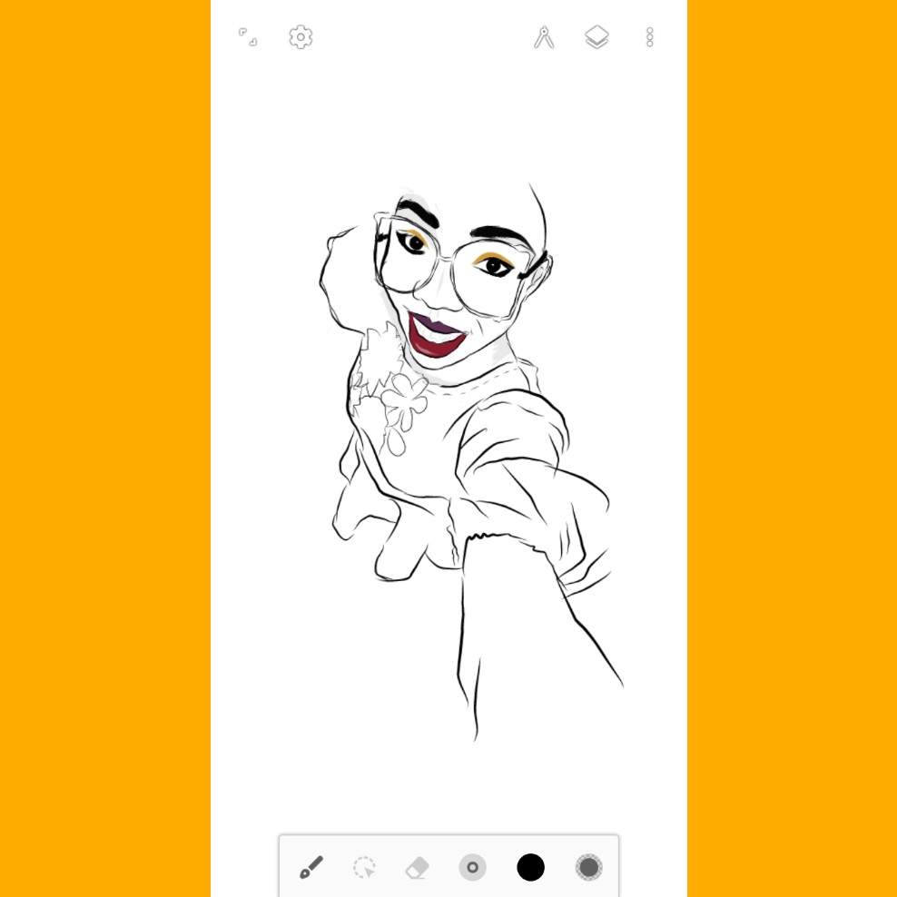 After the image is successfully imported, you create a new layer(The second button by the right top corner is the layer option), on this layer we shall outline our image to give it a structure using the brush tool( found below on a tray containing the brush icon, selecting tool, eraser icon, size tool, colour panel and the opacity tool)