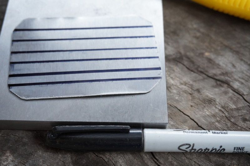 Add guide lines with a permanent marker or electrical tape. I used a marker and an old business card as a straight edge.