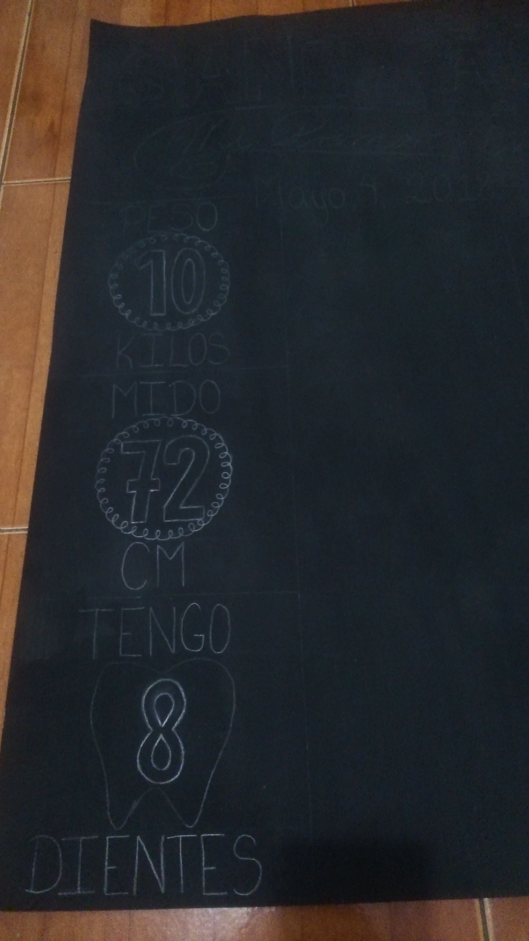 After that I divided the rest of the cardboard in 3 parts. I divided the first one again in 3 parts, in the first I wrote "I weight 10 kilos", in the second "I am 72 centimeters long" and in the third "I have 8 teeth".