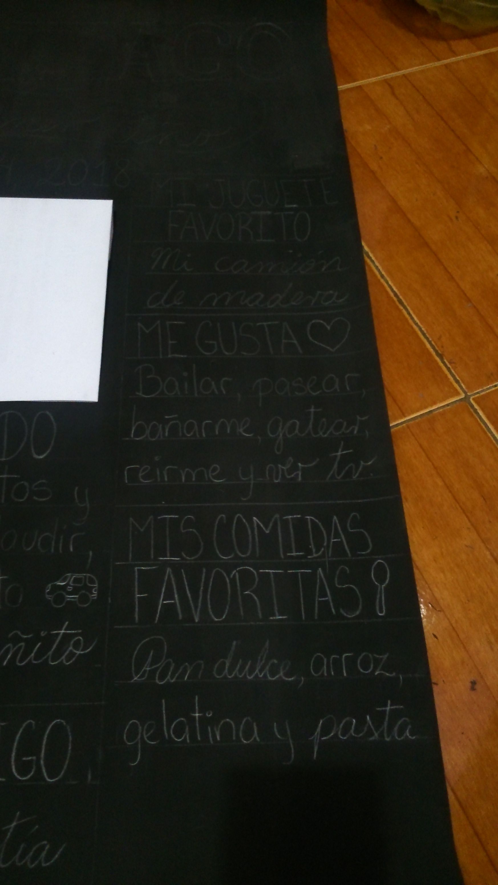 In the last section I wrote 3 things (all separated, you'll see it better in the next pics). First "My favorite toy: My wooden truck", in the next one "I like: Dance, going out, bath time, crawl, laugh a lot and watch tv", and in the last one "My favorite foods: sweet bread, rice, gelatin and pasta.