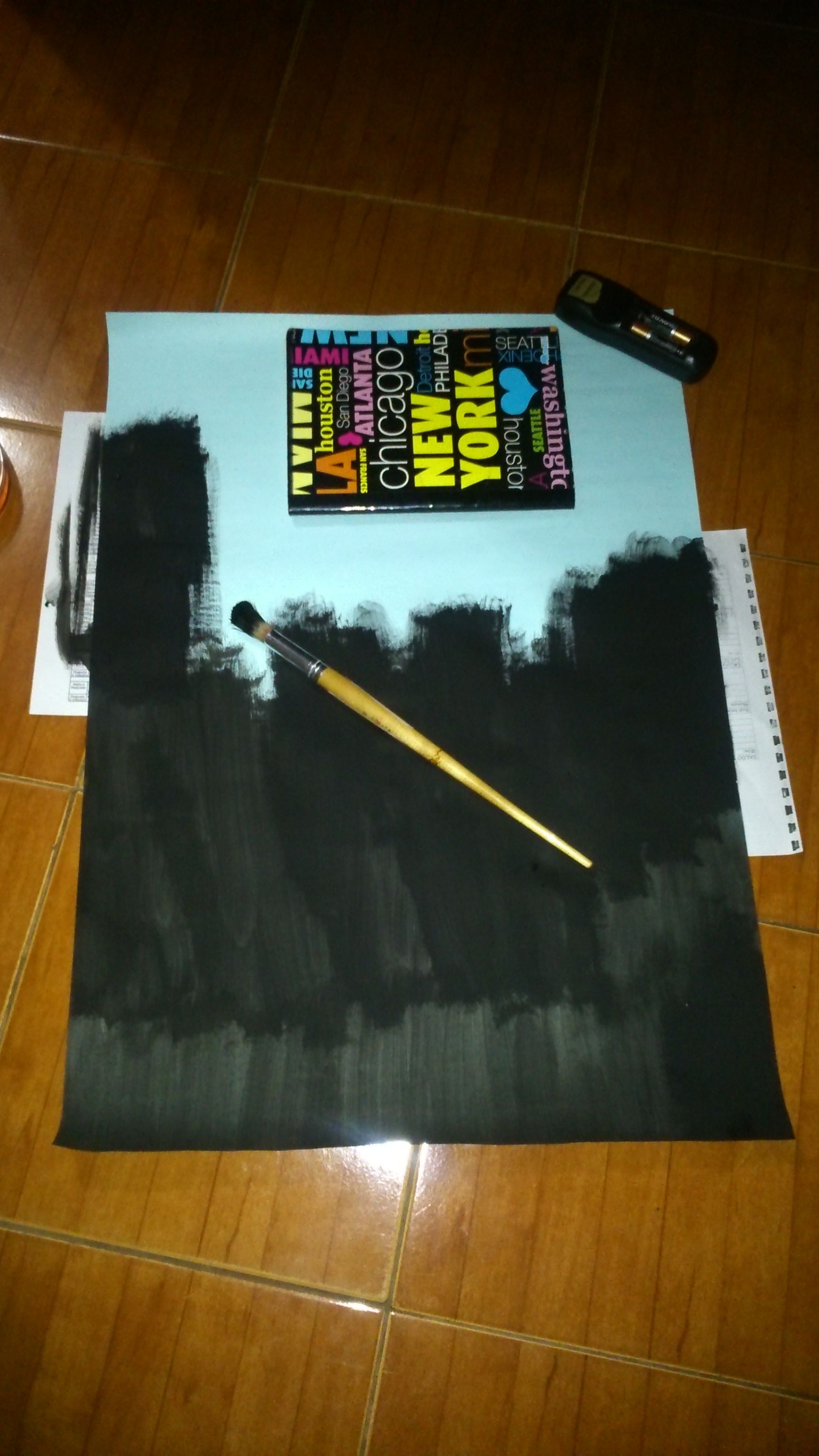 Then I painted the cardboard with black paint, just by the side I used it.