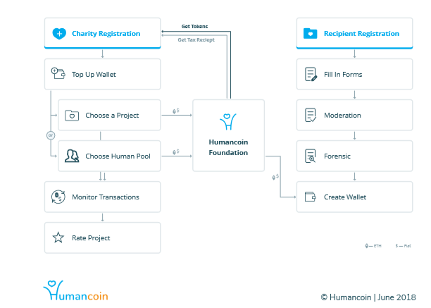 The Humancoin platform is designed with the goal of facilitating the process of interaction between philanthropists and beneficiaries to the greatest possible extent: