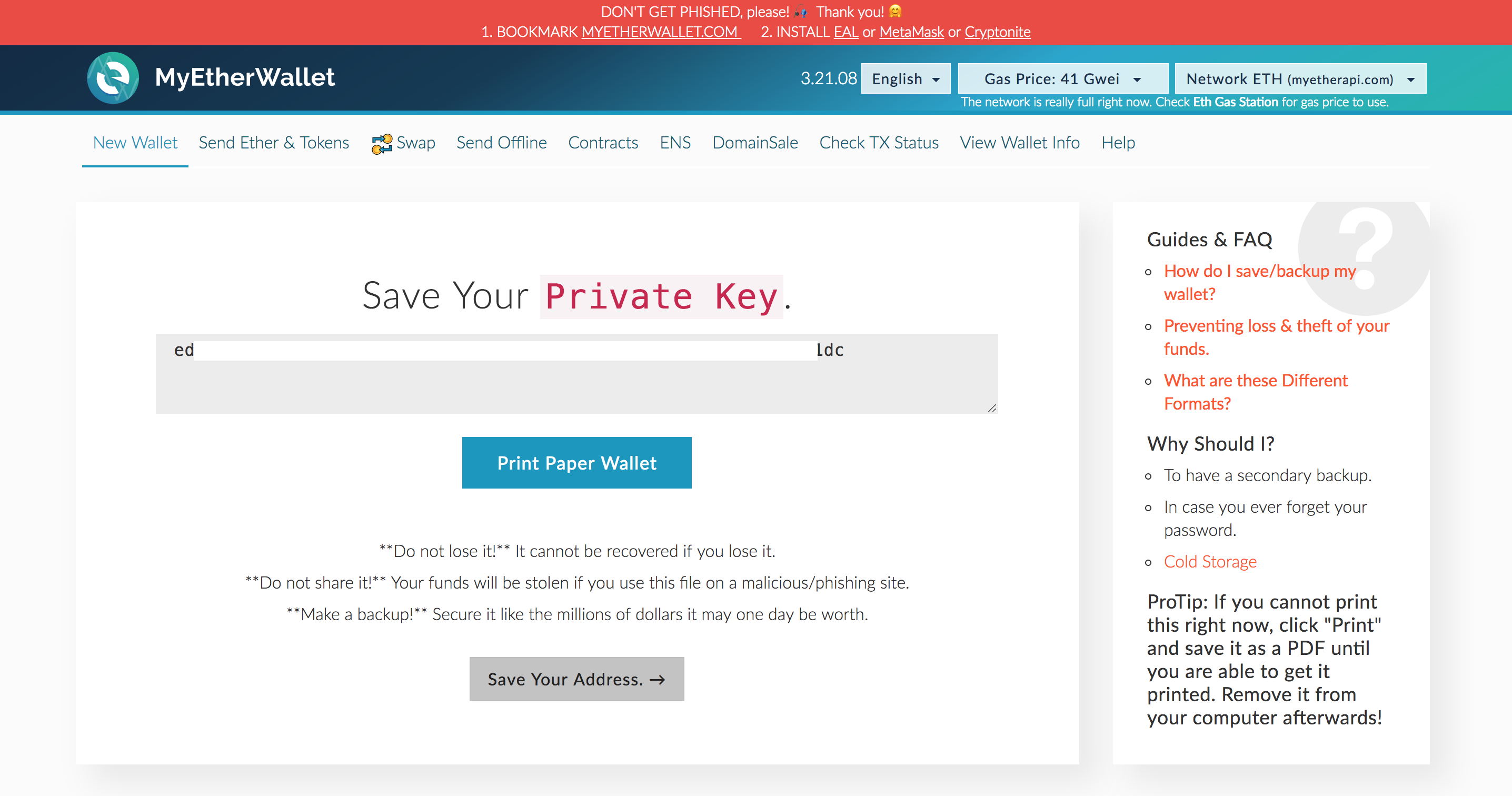 5.1 Private key is the combination of numbers and characters shown in the center of the screen. Copy and paste it into a text editor and save it as a file.