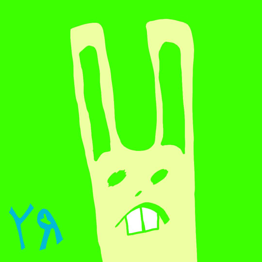 Yellow Bunny left his friends' apartment one evening for a stroll. It was unseasonably warm, and Bunny thought that might be affecting the color of the sky, which was a peculiar shade of neon green, but Bunny had just finished eating a "special" fruit pie, so he wasn't too bothered by the synaesthetic display.