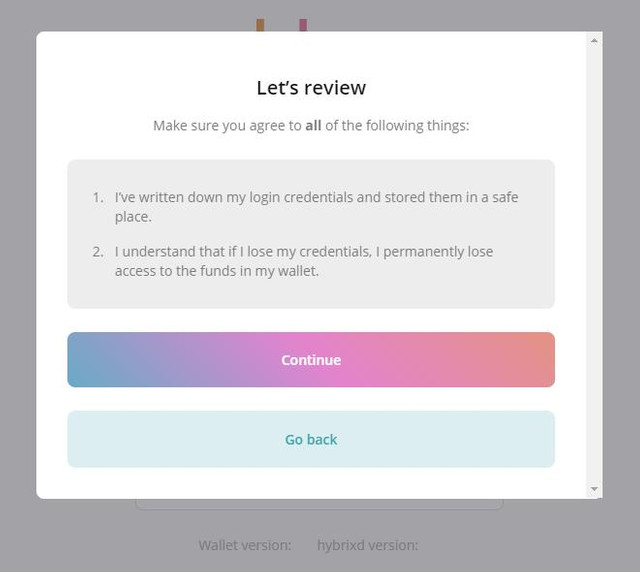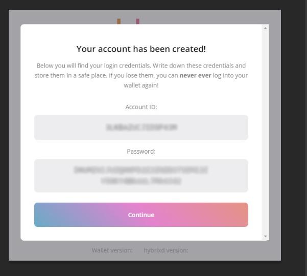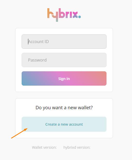 - Go to: http://wallet.hybrix.io and click create a new account and obtain your new ID and password