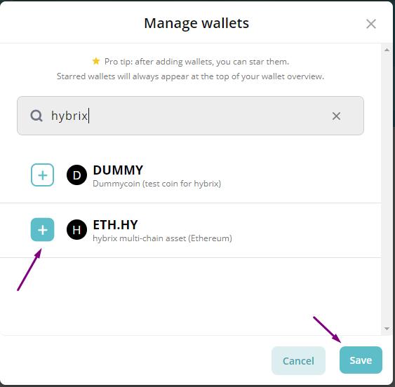 - Add wallet by searching for Hybrix. Add Eth.hy wallet to send and recieve hybrix tokens.