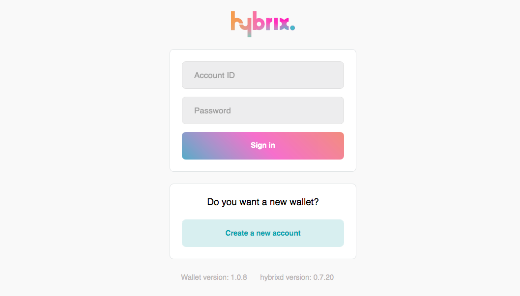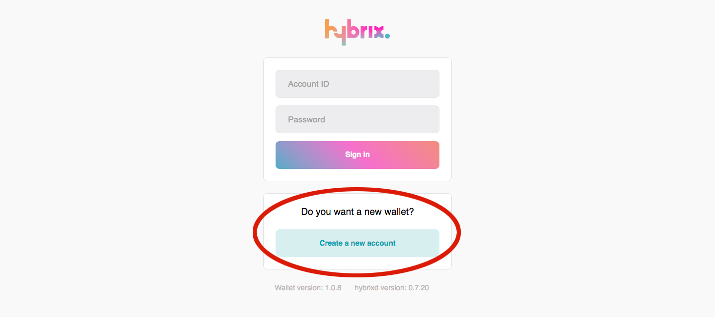 Step 1. Go to https://wallet.hybrix.io and press the "Create a new account" button.