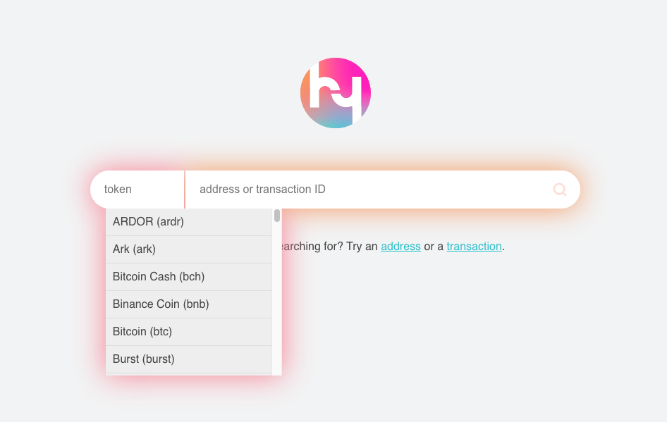As you already could guess, Hybrix explorer is also a multi-currency explorer and supports all the coins and tokens that are supported by the Hybrix protocol. The major of them are: Bitcoin (BTC), Ethereum (ETH), Ethereum Classic (ETC), Bitcoin Cash (BCH), Litecoin (LTC), Lisk (LSK), NEM (XEM), NXT (NXT), Waves (WAVES), ZCash (ZEC), Dash (DASH) and many more. A full list you can see here.