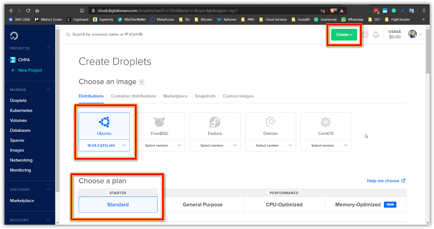 Register at Digital Ocean (if you already don’t have an account) and create a new “Droplet”.