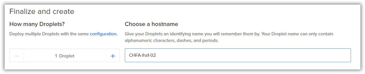 Name your Droplet. As you can see, we named our: CHFA-fra1–02:
