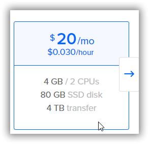 We don’t need a crazy powerful and expensive server. Right now we can go with something that has 4GB of RAM, 2 CPUs and 80 GB disk: