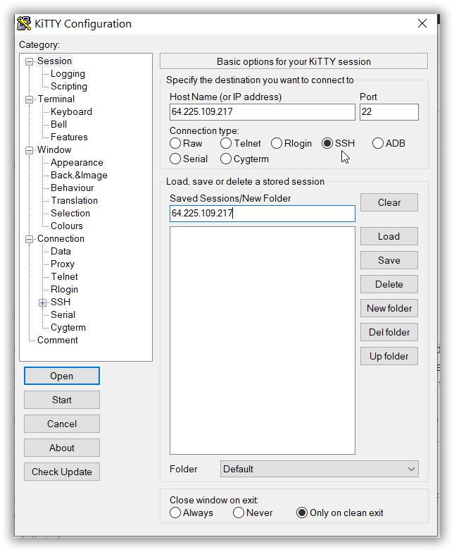 After just a few minutes, our server will be ready. Let’s connect to it. Of course, we need something like putty. Let’s use Kitty 😊.