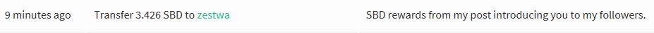 Today, my second introduced Steemian @zestwa received 3.426 SBD from the payout for my post introducing her.