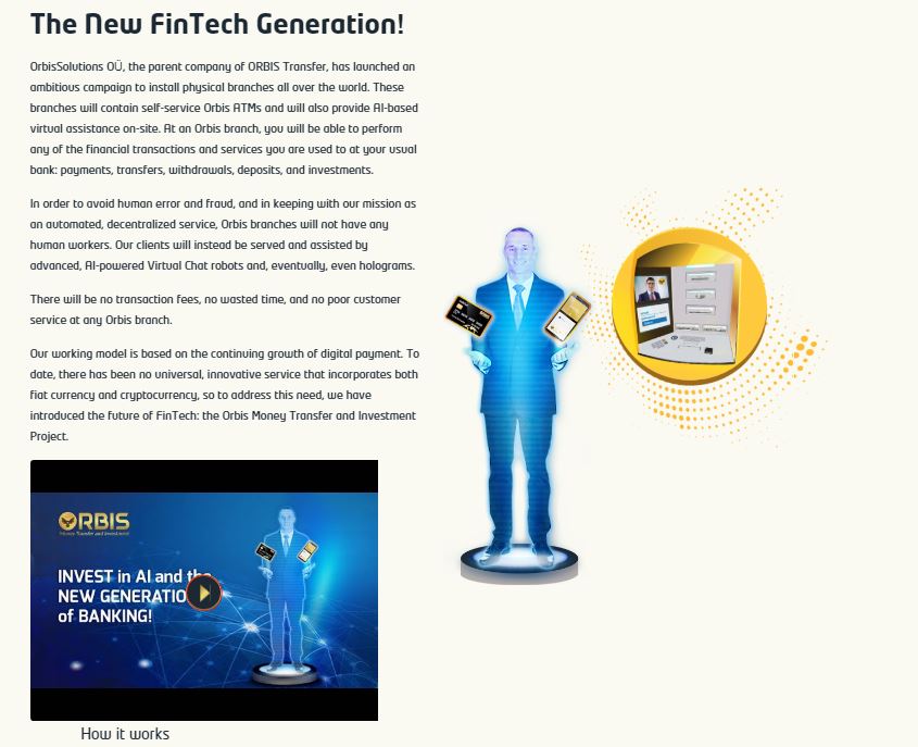 The future represents simplicity and automation of services! Orbis Worldwide Funds Transfer and Purchase is definitely the long term! We arrive with a quick, convenient and low-priced notion of personal transactions, expense, and advertising offerings providing out User-Friendly services through intelligent marketing in all public classes. Our team’s eye-sight is certainly creating a brand-new international economic office, structured on blockchain decentralized technology. Orbis Firm will offer innovative transfer, payment and expenditure services employing cryptocurrency tokens and stop string technology. This technology blended with cellular and pc program will offer mankind the possibility to generate income transactions, purchases and obligations using our self-service equipment, as very well as personal smartphones and computers with internet access,ORBIS PLTAFORM