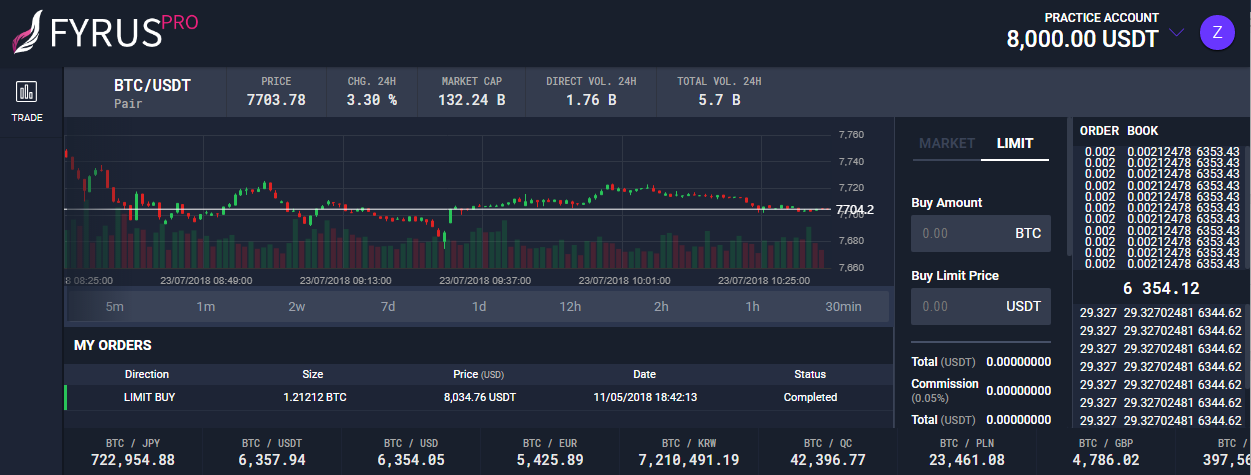 Ведущие криптовалюты, включая BTC, LTC, ETH, MNR и ZEC, будут доступны для торговли на Fyrus Pro сразу после запуска, с запланированной поддержкой всех криптовалют в будущем.