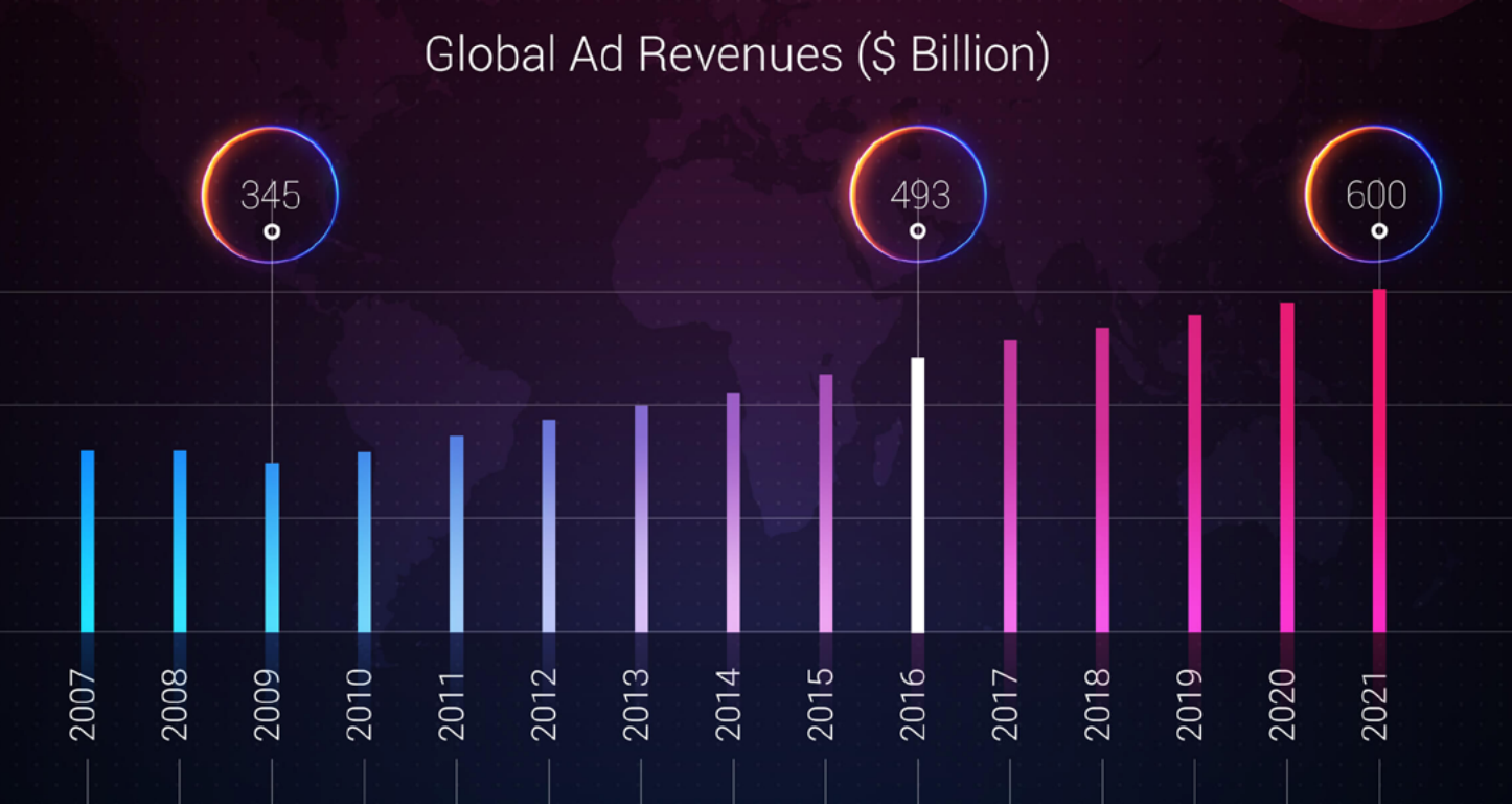 Но несмотря на все эти недостатки интернет-рекламы, она все равно не стоит на месте, а растет из года в год как на дрожжах. Только за последние годы он превысил общий бюджет телевизионной рекламы, что считается историческим моментом. Многие эксперты считают, что в 2021 году общий оборот рекламы достигнет более 600 миллиардов долларов. И я хочу сказать вам, недостаточно! Но это не то, о чем мы говорим.