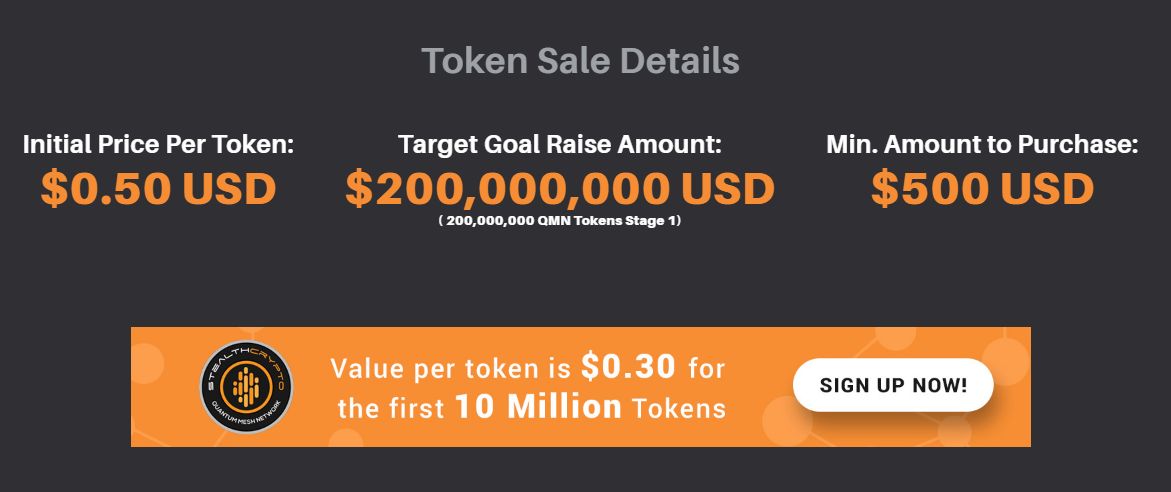 To develop and develop the project, the development team plans to attract investment through ICO. This means that the guys have created their own crypto currency - QMN tokens according to the ERC-20 standard and selling these coins, so they will collect money.