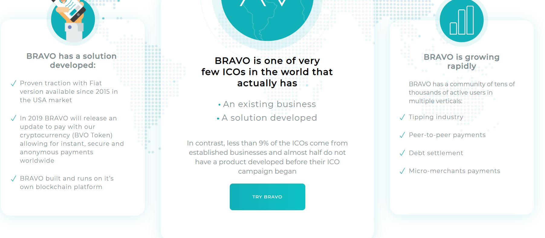 BRAVO, a company founded several years ago in the USA, plans to create a modern and secure system for working with digital money. As part of the BRAVO project developed since 2017 - a new blockchain hybrid consensus protocol (BHCP), designed to increase speed and anonymity in all types of transactions; whether financial / payments, documentation, ownership of assets or otherwise.