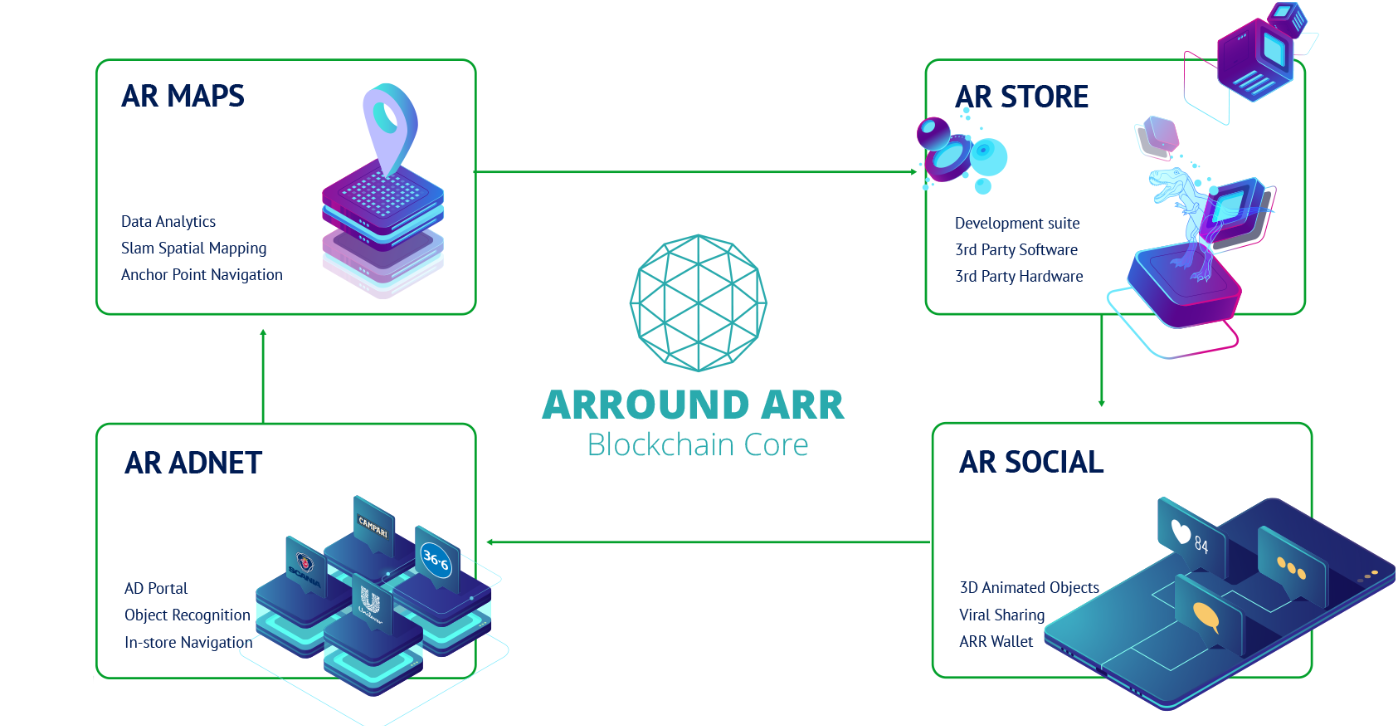 ARROUND-это проект, целью которого является создание децентрализованной платформы и приложения дополненной реальности. В платформу ARROUND будет интегрирована реклама, которая, благодаря новому и уникальному подходу, сможет привлечь новых людей. Интересные и захватывающие фото, видео и новые технические решения, которые появятся на экране смартфона, должны показать свою эффективность. Разработчики планируют решить проблемы всех участников рынка AR - от обычных пользователей до рекламодателей.