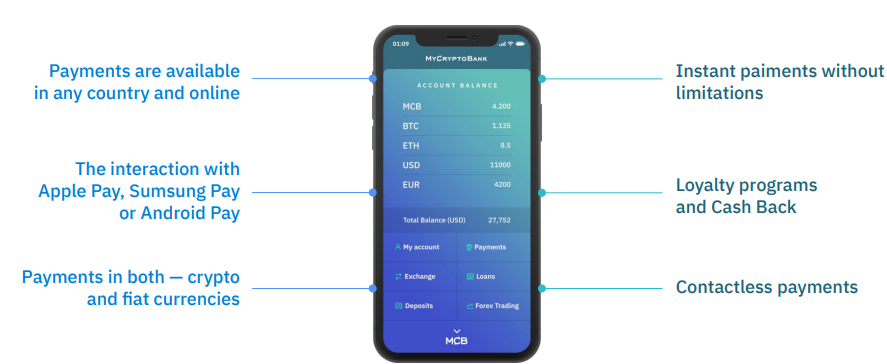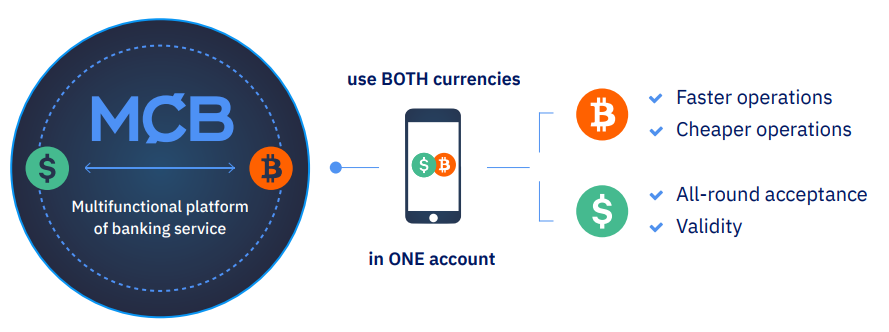is an online bank allowing any client registered in the electronic bank system to make a full range of bank operations, additional operations with cryptocurrency (payment processing, debit cards, credits and cheap investment products, use of cryptoassets as credit security and many others) based on Blockchain technology without visit of department. So, MyCryptoBank provides services of client’s remote access to accounts, products and bank services in order to make banking operations.