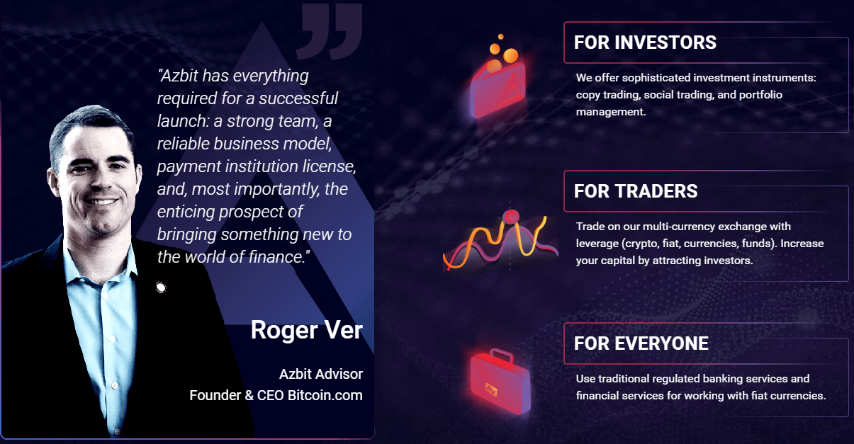 Previously, Ver has worked as an advisor for at least four startups that were launching their initial coin offerings (ICO). All these offerings have gone on to increase their market capitalizations after recording successful ICO's. The Azbit project is, therefore, expected to become an influencer in the crypto world. The platform will make it possible for its users to participate in what is being referred to as social copy trading (as stated on this content).