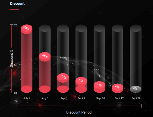 Chương trình ICO sẽ diễn ra trong khoảng 3 tháng, bắt đầu từ 1/7 với vòng Pre-sale với mức chiết khấu cao nhất là 50%.