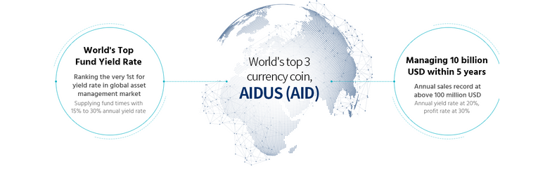 The AIDUS Global D-Fund Platform is a decentralized fund market established upon the ETHEREUM network to serve as a professional asset management platform in which global investors and asset management companies are able to use Blockchain technologies and SMART Contracts to safely and transparently create and settle into P2P (Peer-to-Peer) fund agreements.