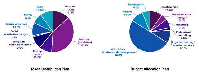 The AIDUS Coin, carrying out the critical role in the ADFP-based decentralized fund market, shall be acquired through the token presale in the form of an ICO(Initial Coin Offering). The tokens offered in the ICO shall be based in ERC-2o token format, and can be used in the fund market once the AIDUS Global D-Fund Platform-based decentralized fund market is launched. Moreover, once the AIDUS Main-Net is launched in later phases, the token shall be changed into the AIDUS Coin at 1:1 ratio.