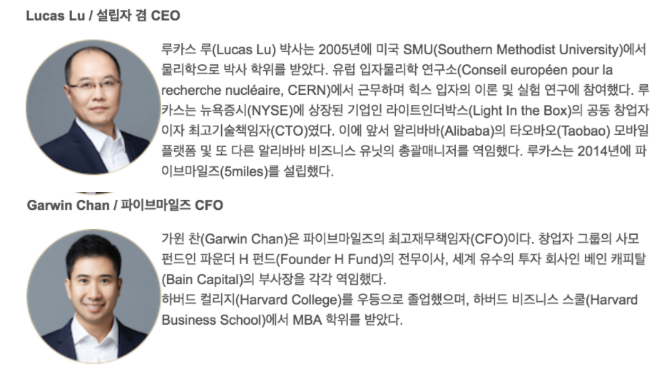 - Cybermiles의 가장 큰 장점은 5miles의 1200만이라는 사용자풀을 기반으로 시작된다는 점 입니다. 또한 CEO, 루카스 루의 경력을 보면 굉장히 뛰어난 CEO라는 점을 알 수 있습니다.