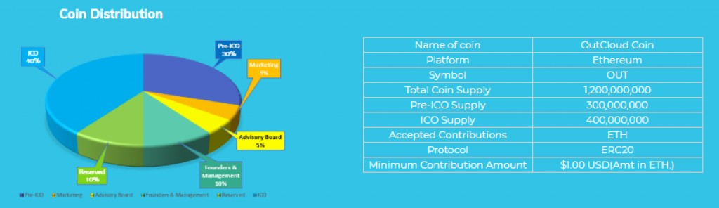 Untuk mendanai pengembangan dan melanjutkan pertumbuhan platform dan jaringan blockchain OutCloud, sebuah penawaran koin awal telah diadakan. Penawaran ini akan menjadi penawaran yang fleksibel dan tidak tertutup.