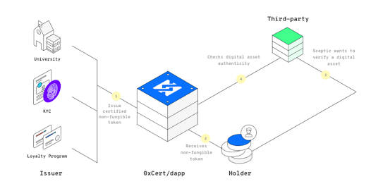 На протоколе 0xcert вы можете проверить существование, проверку и кто владеет активами даже вне знания третьей стороны.